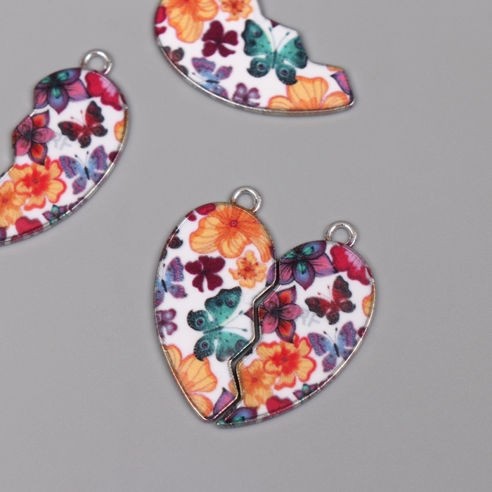 Декор для творчества металл, эмаль "Сердце с бабочками" набор 2 шт 3х2,8 см