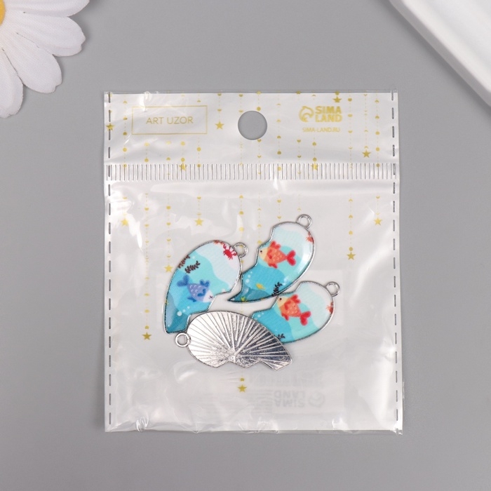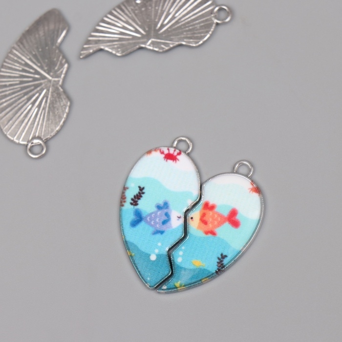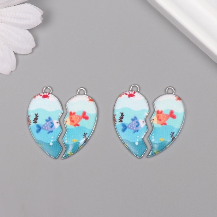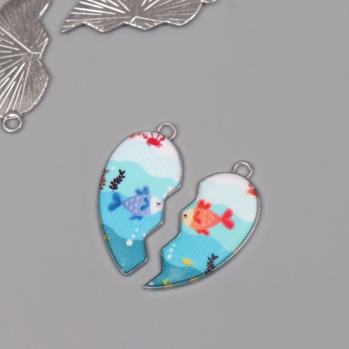 Декор для творчества металл, эмаль "Влюблённые рыбки" набор 2 шт 3х2,8 см