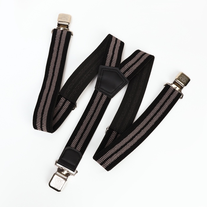 Подтяжки взрослые, ширина 3,8 см, цвет чёрный/серый