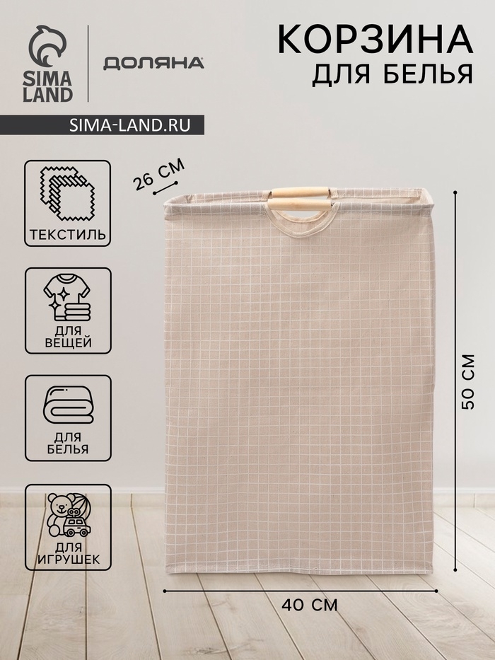 Корзина для белья Доляна «Квадраты», 40×26×50 см