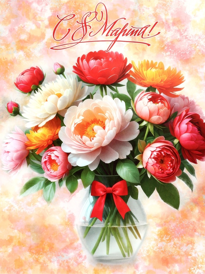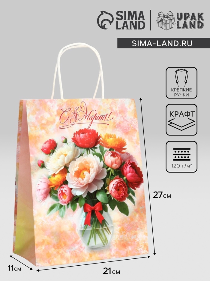 Пакет подарочный крафт "С 8 Марта!" 21 х 11 х 27 См