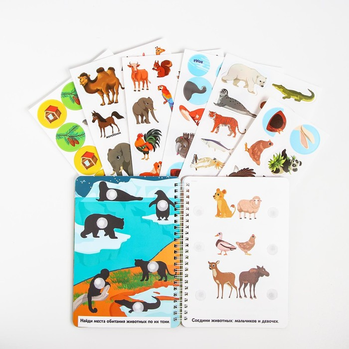 Игрушка на липучках — это развивающая игра, созданная специально для малышей. Набор включает в себя 6 полей и 12 деталей, которые познакомят ребёнка с животным миром.