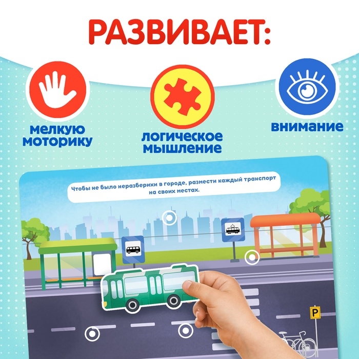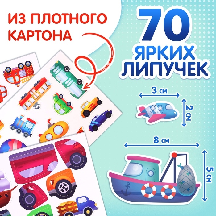Книга с липучками «Транспорт», 70 липучек