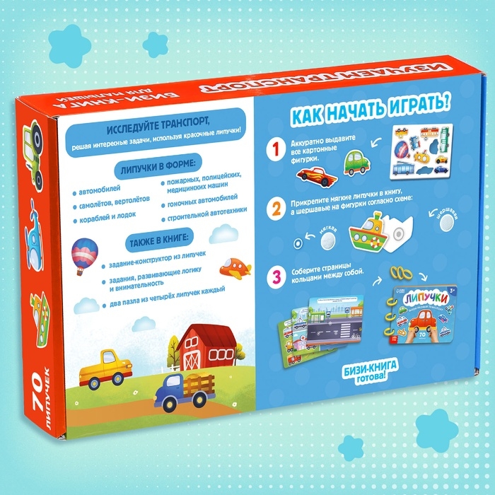 Книга с липучками «Транспорт» станет отличным выбором для занятий с детьми. Это уникальное развивающее пособие, которое сочетает в себе интерактивность и обучение в игровой форме. В наборе вы найдёте более 70 липучек, которые сделают процесс обучения ярким и увлекательным.