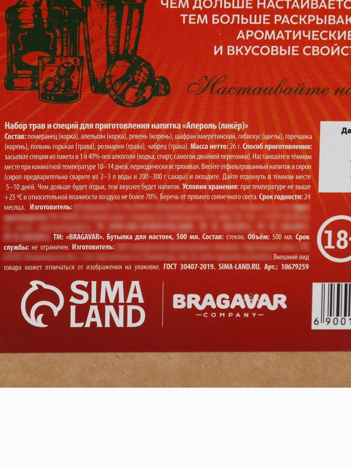 Набор для приготовления настойки «Ликёр: апероль», набор специй, штоф