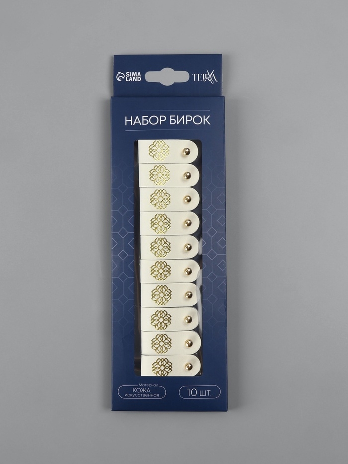 Бирка с кнопкой, с тиснением, «Мандала», 8 × 1.5 см, набор 10 шт, молочные
