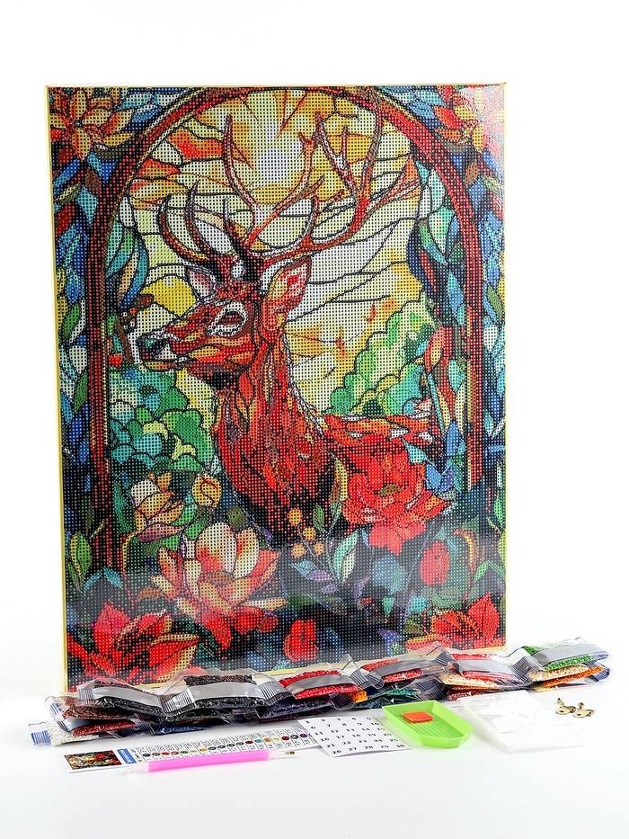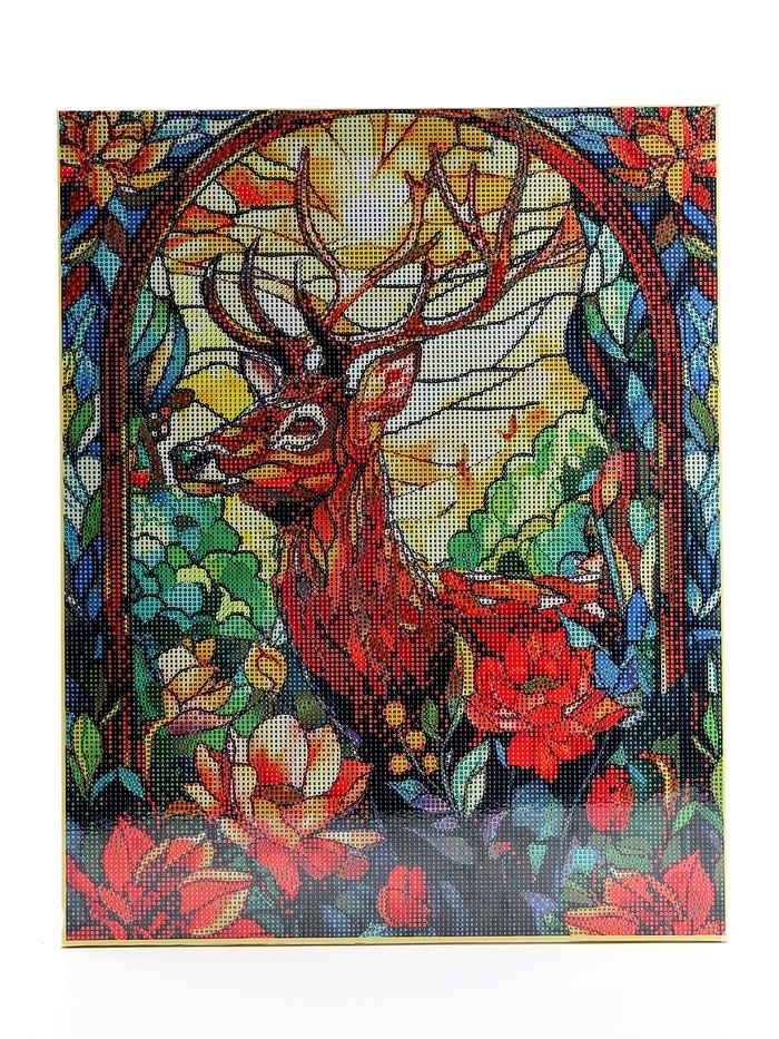 Алмазная мозаика с полным заполнением на холсте с подрамником «Витраж с оленем», 40 х 50 см