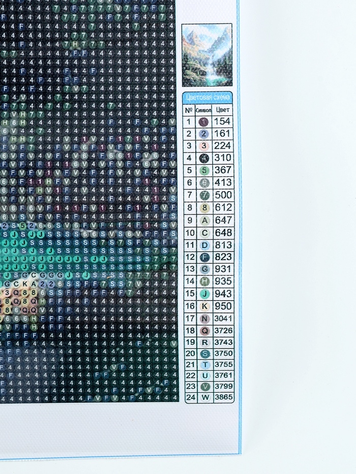 Вам предстоит разложить кристаллики карандашом по пронумерованной схеме. Холст с клеевым покрытием будет надёжно удерживать стразы.