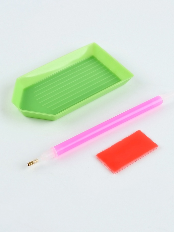 - Возьмите специальный карандаш, окуните кончик в клеевую подушечку (розовый квадратик), возьмите страз. Таким образом заполните рисунок.