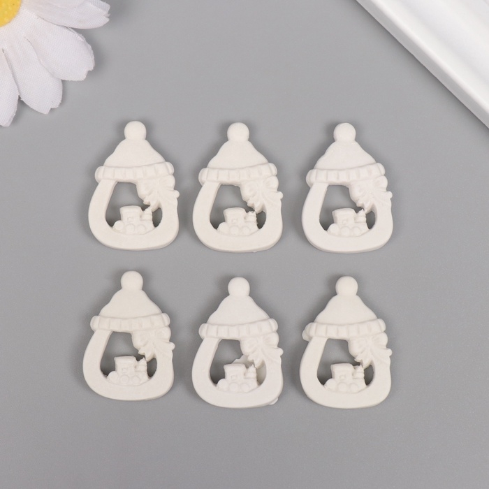 Декор для творчества полистоун "Бутылочка с паровозиком" белый набор 6 шт 2х3 см