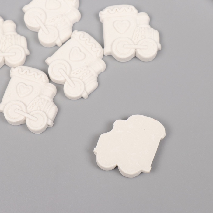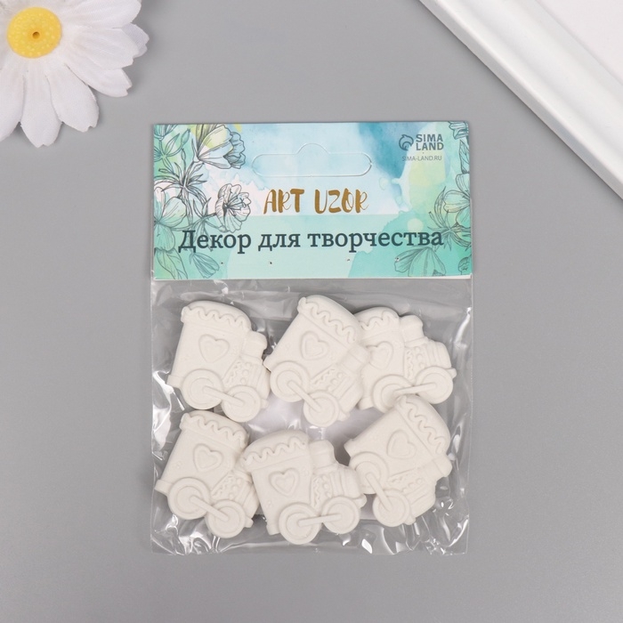 Декор для творчества полистоун "Паровозик" белый набор 6 шт 3х2,8 см
