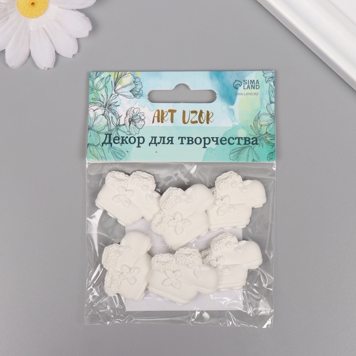 Декор для творчества полистоун "Пинетки" белый набор 6 шт 3х2,7 см