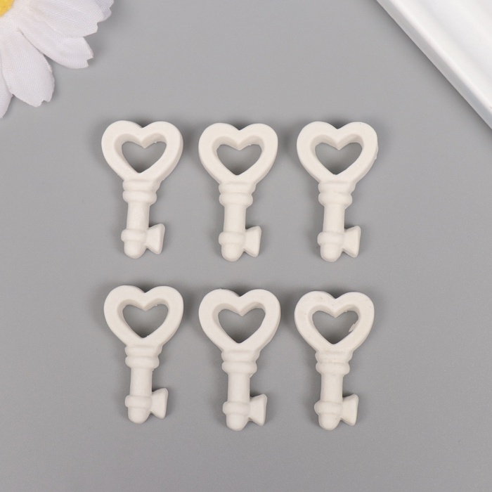 Декор для творчества полистоун "Ключик с сердечком" белый набор 6 шт 2х3 см