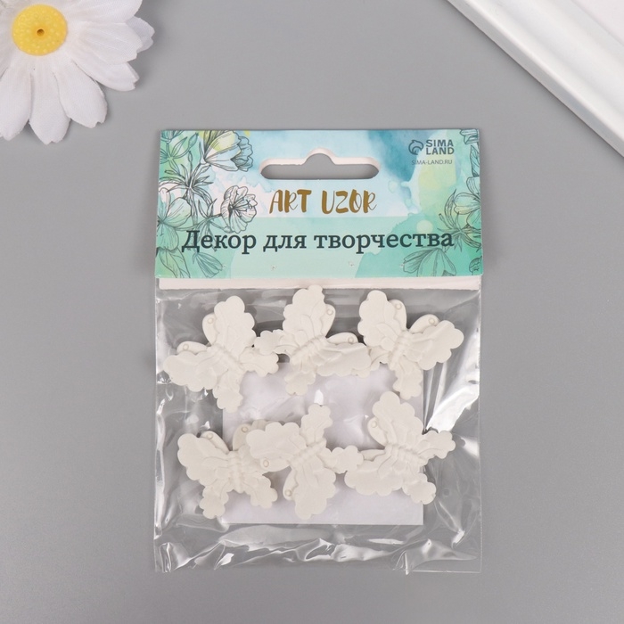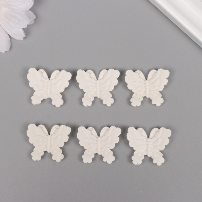 Декор для творчества полистоун "Бабочки" белый набор 6 шт 2,7х2,5 см