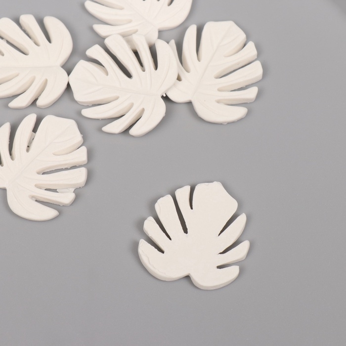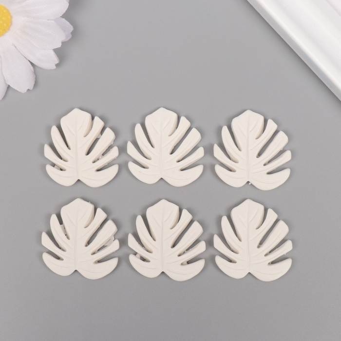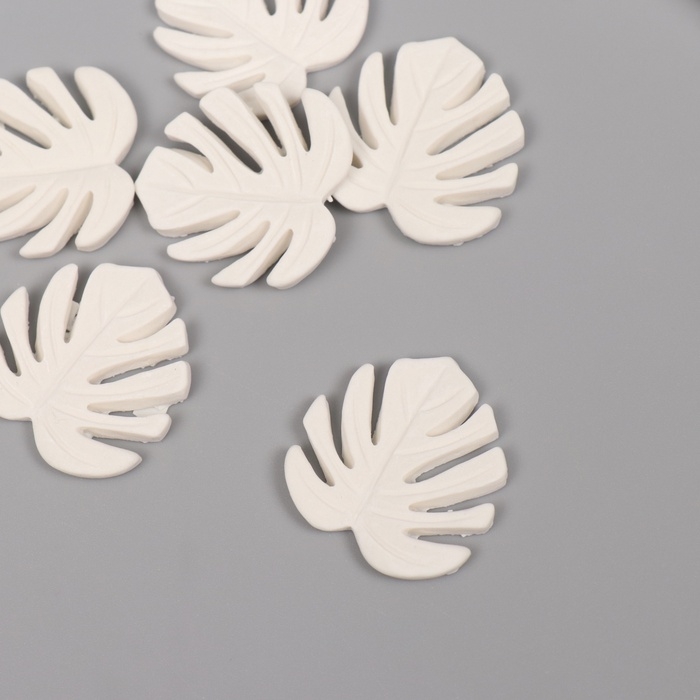 Декор для творчества полистоун "Лист монстеры" белый набор 6 шт 2,8х3 см