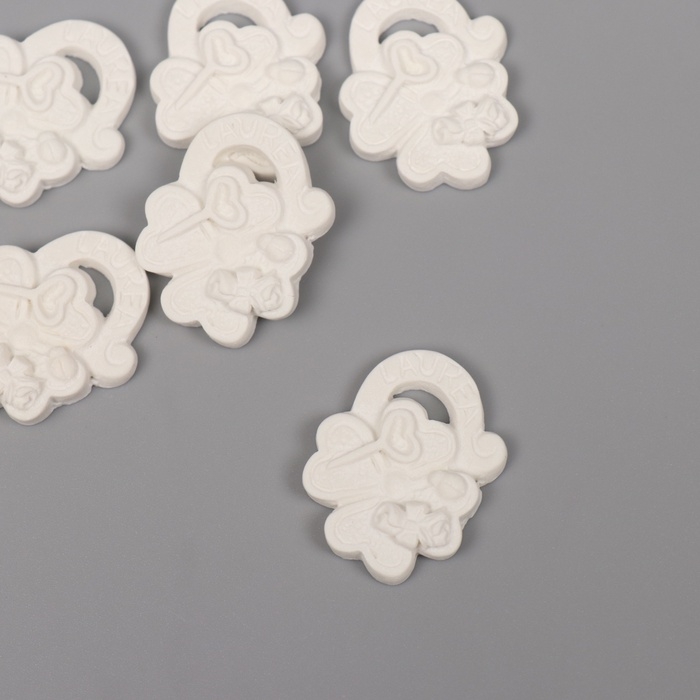 Декор для творчества полистоун "Клевер с ключиком" белый набор 6 шт 2,5х2,8 см