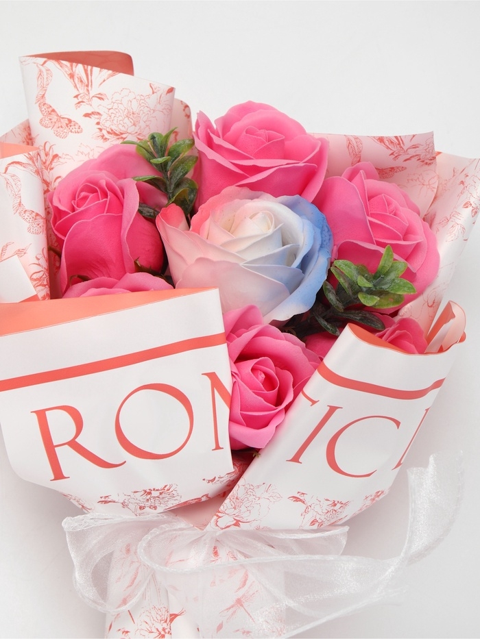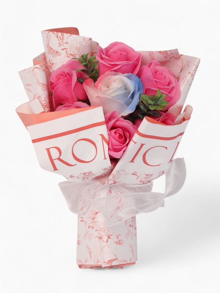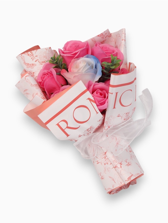 Букет из 6 розовых роз и 1 дизайнерской розы