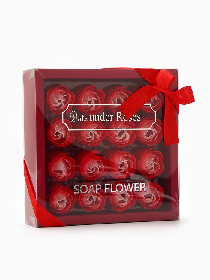 Набор мыльных роз в коробке 16 штук, красно-белые