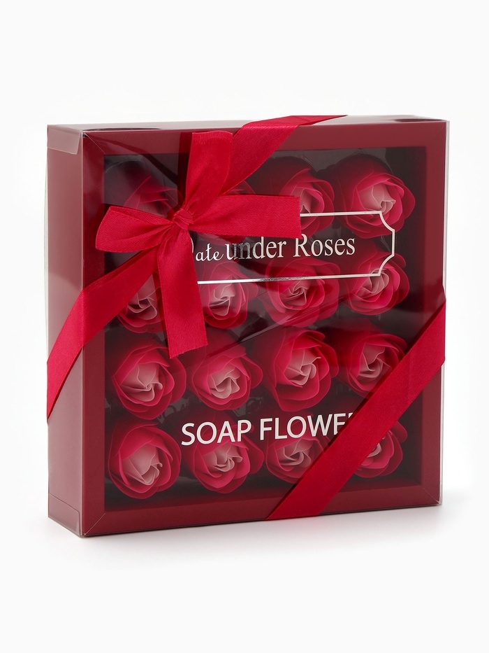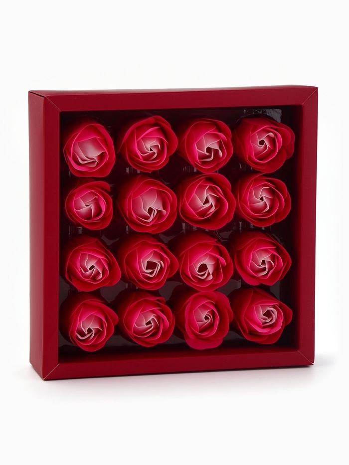 Набор мыльных роз в коробке 16 штук, розово-белые