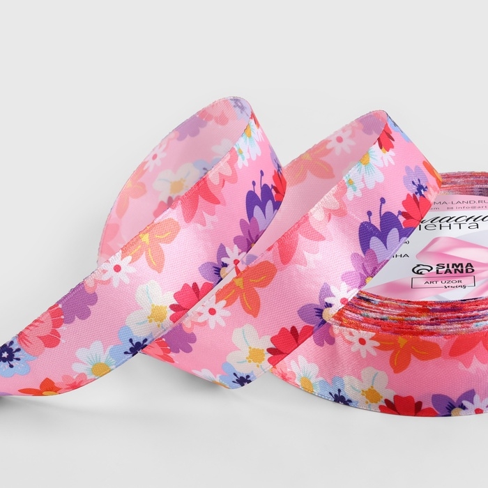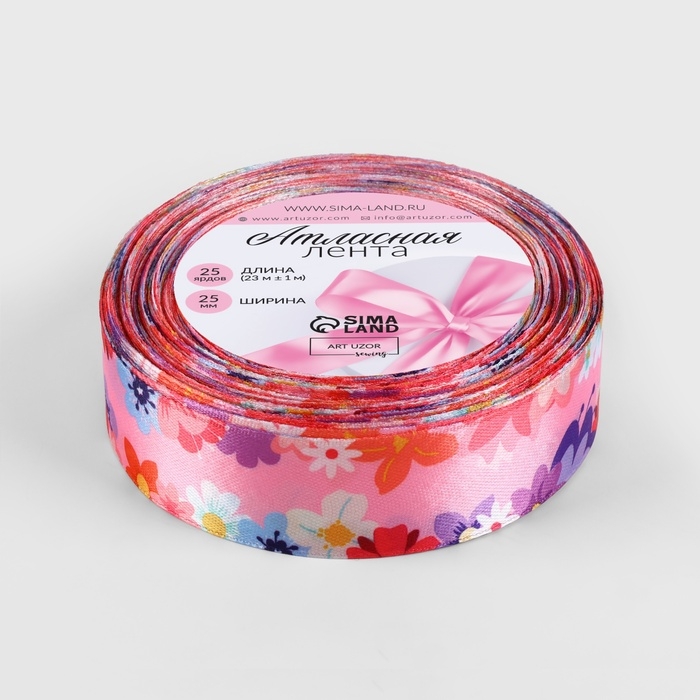 Лента атласная «Розовый букет», 25 мм × 23 ± 1 м, разноцветная