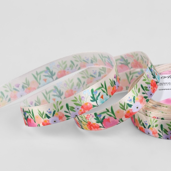 Лента атласная «Полевой букет», 15 мм × 23 ± 1 м, разноцветная