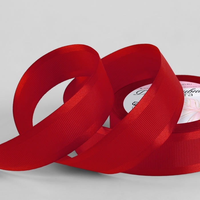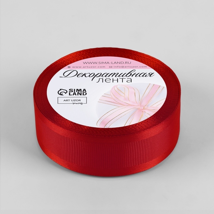 Лента декоративная, репсовая/атласная, 25 мм, 9,1 ± 0,5 м, красная №26