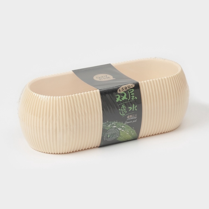 Кашпо для цветов с поддоном Rasfill, 1,3 л, 20,5×8,5×7 см, овальное, бежевое