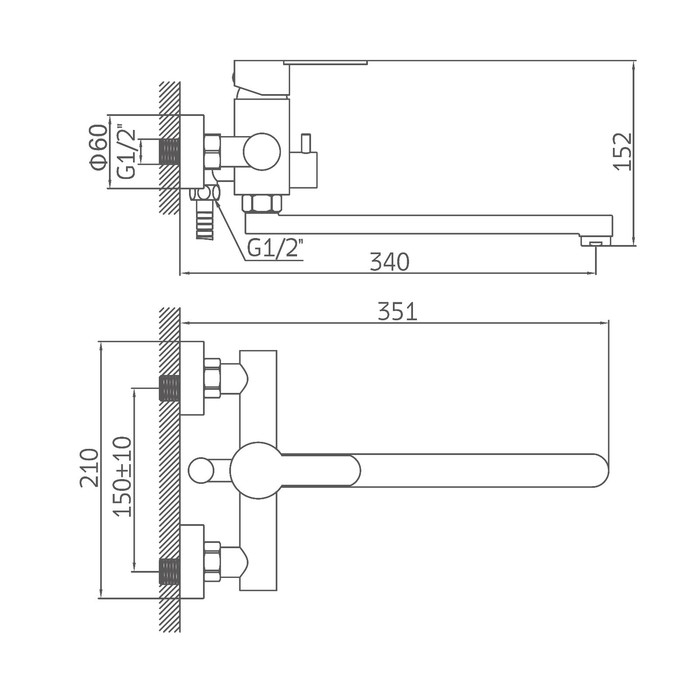 Смеситель для ванны Accoona A71103, однорычажный, нержавеющая сталь, хром
