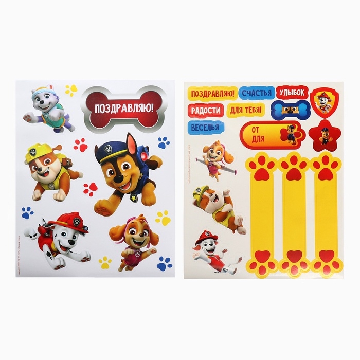 Набор крафтовых пакетов со стикерами, Щенячий патруль, 18х22х12 см