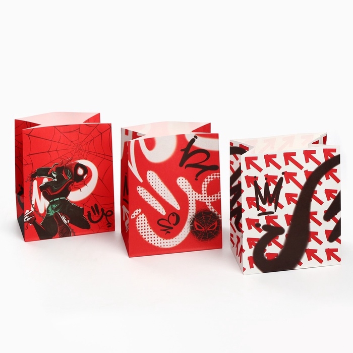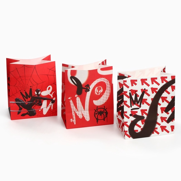 Набор крафтовых пакетов со стикерами, Человек-паук, 18х22х12 см