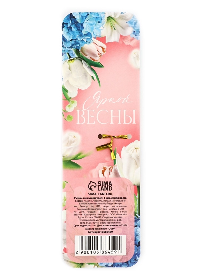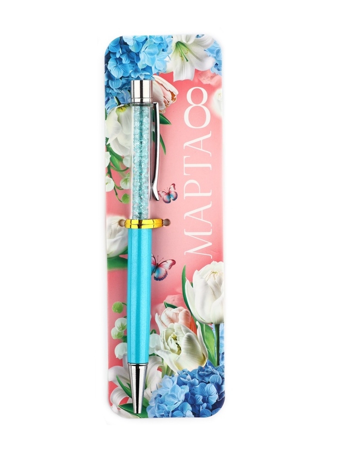 Ручка шариковая синяя паста металлический корпус с шейкером «8 МАРТА» 1.0 мм