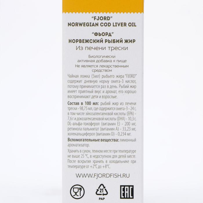 - Рыбий жир FJORD имеет приятный лимонный аромат и обладает едва ощутимым вкусом, его хорошо воспринимают дети и взрослые.