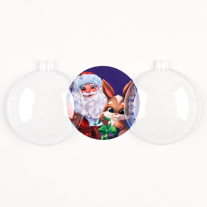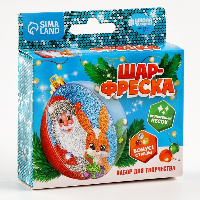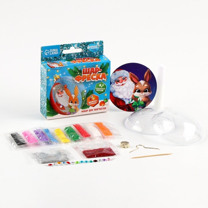 Ёлочный шар - фреска своими руками на новый год «Дед Мороз и зайка», набор для творчества