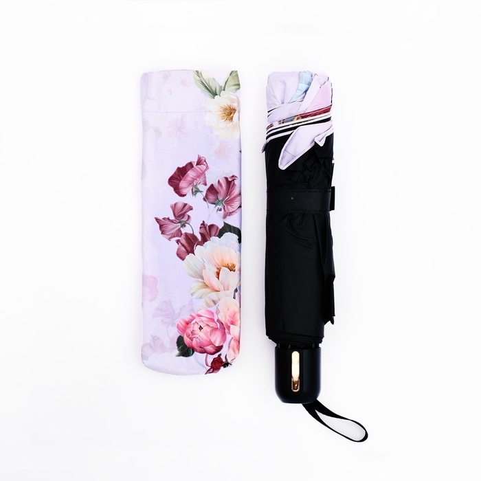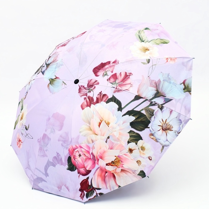Зонт механический «Пионы», эпонж, 4 сложения, 10 спиц, R = 53/60 см, D = 120 см, цвет МИКС