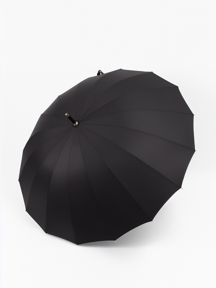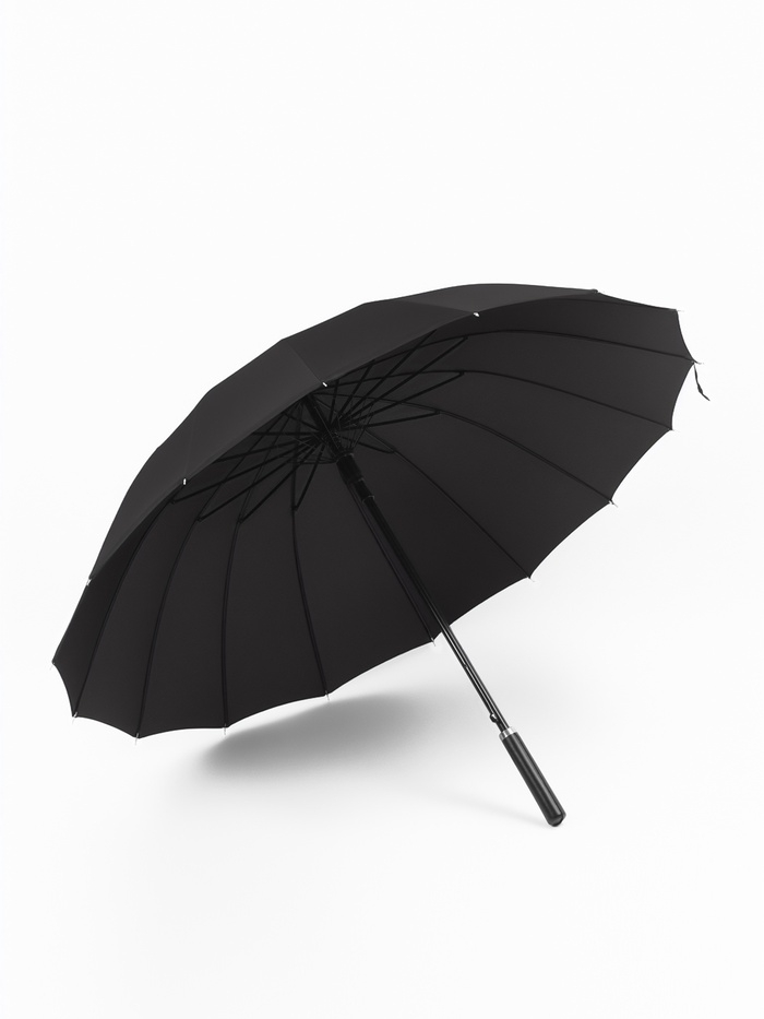 Зонт-трость п/авт R51/60 16сп П/Э В/У ОДНОТОН прямая ручка кожзам черный пакет