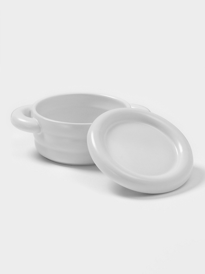 Горшочек для запекания Доляна «Зефир», 250 мл, 15×10,5×6,3 см, с ручками, с крышкой, керамика, белый