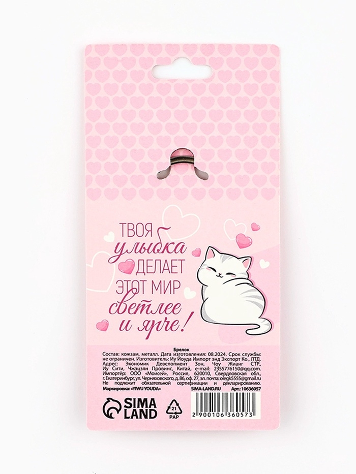 Брелок для ключей кожзам женский «Улыбнись», 6,1 х 9 см