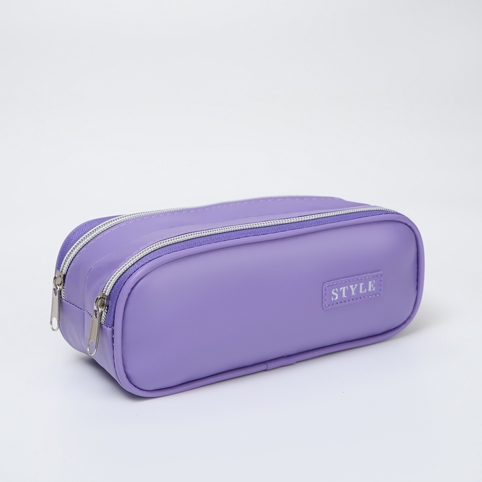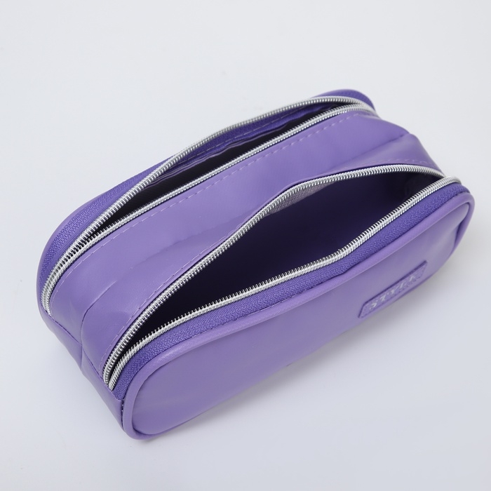 Косметичка-пенал, 2 отдела на молниях, цвет фиолетовый