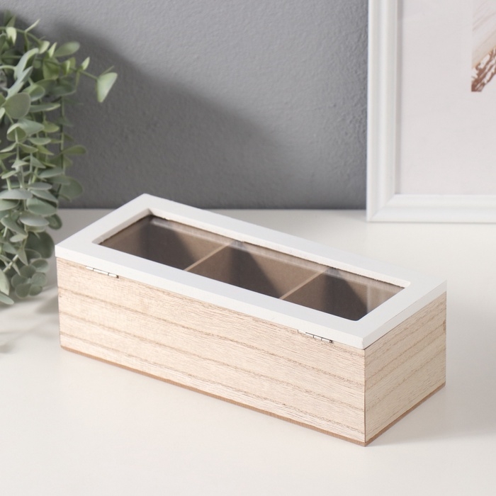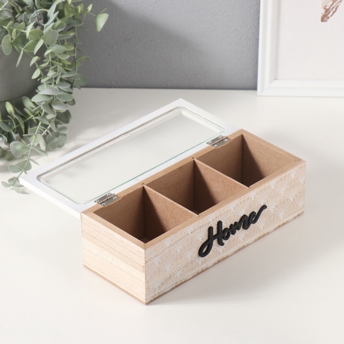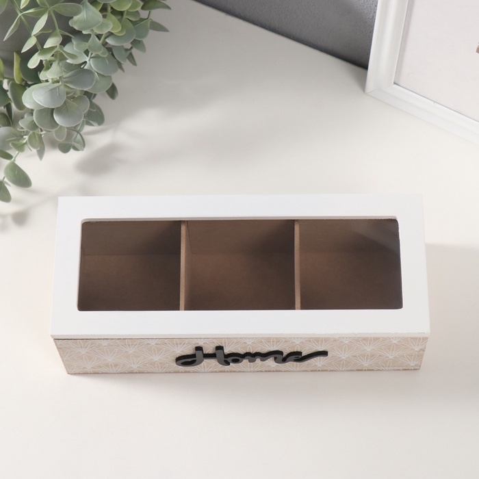 Шкатулка дерево 3 деления "Принт из ромашек" 9,6х23,7х7 см