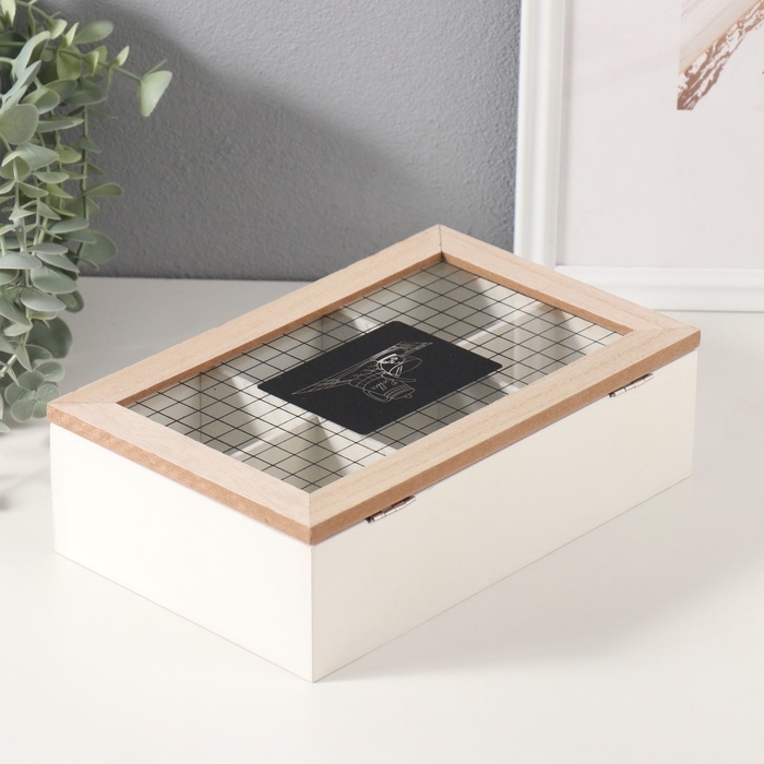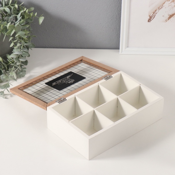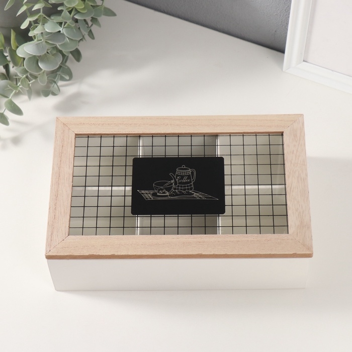 Шкатулка дерево 6 делений "Чайничек с кофе" 23,8х15х7 см