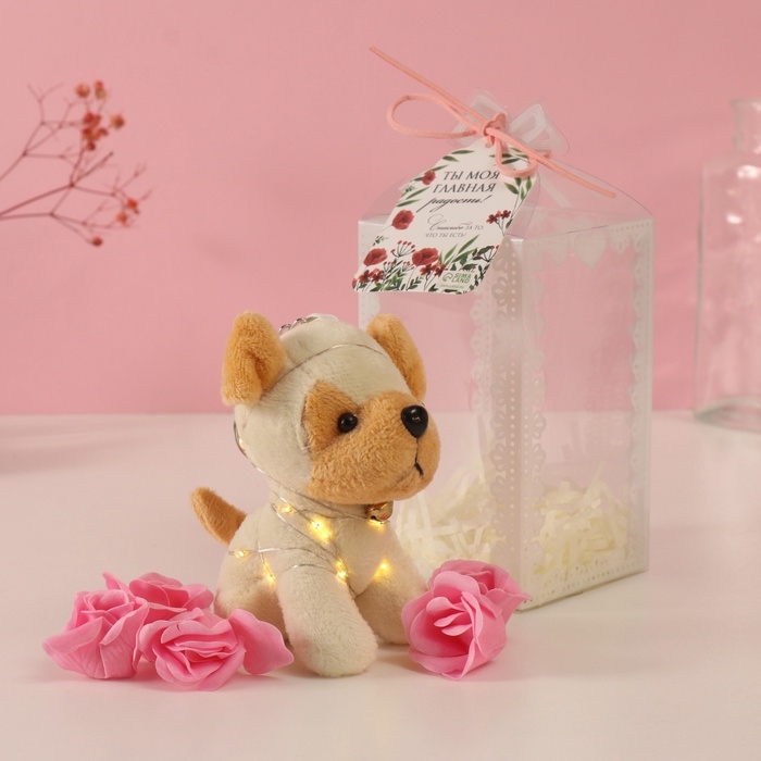 Набор подарочный "Пёсик белый" мыльные розовые розы 5 шт, роса 7х7х12 см