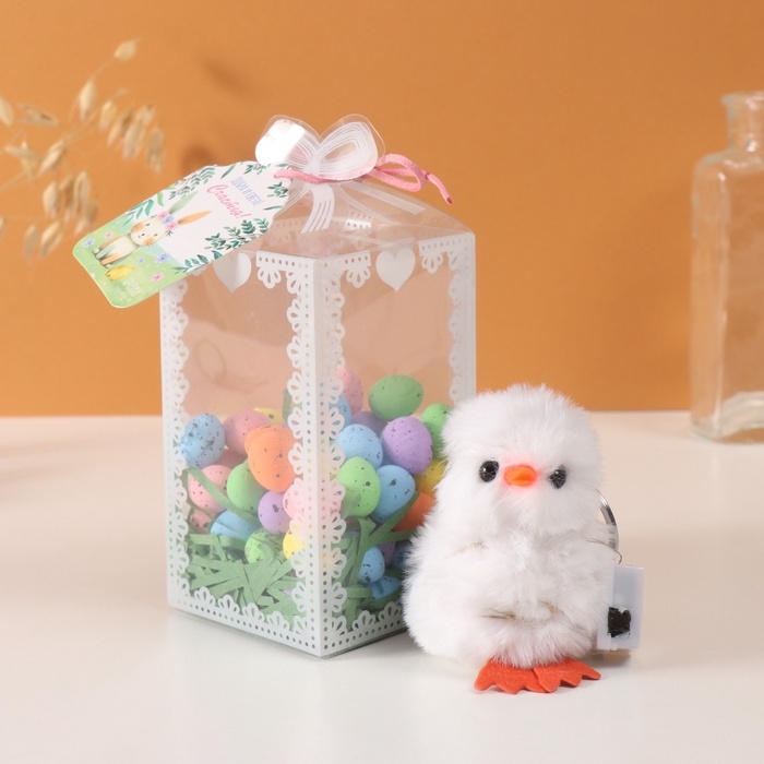 Набор подарочный "Цыплёнок белый" яички 50 гр, роса 7х7х12 см