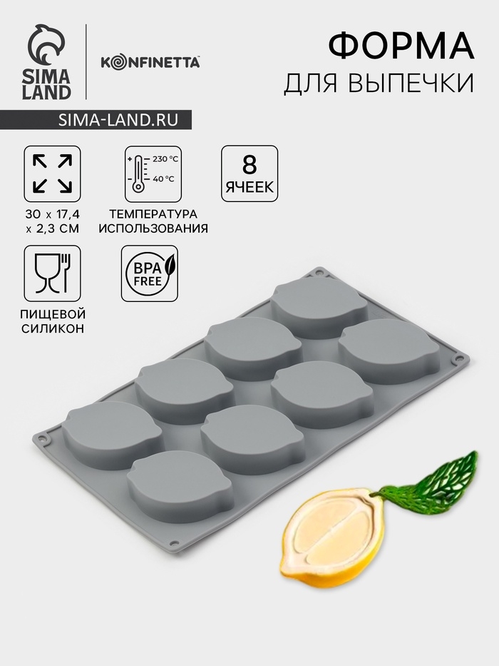 Форма для выпечки и муссовых десертов KONFINETTA «Лимон», силикон, 8 ячеек (5,2×4,2 см) 30×17,4×2,3 см, серая