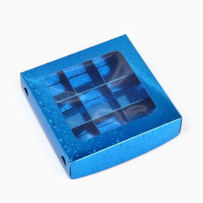 Коробка для конфет «Синие звёздочки», 14.5 х 14.5 х 3.5 см
