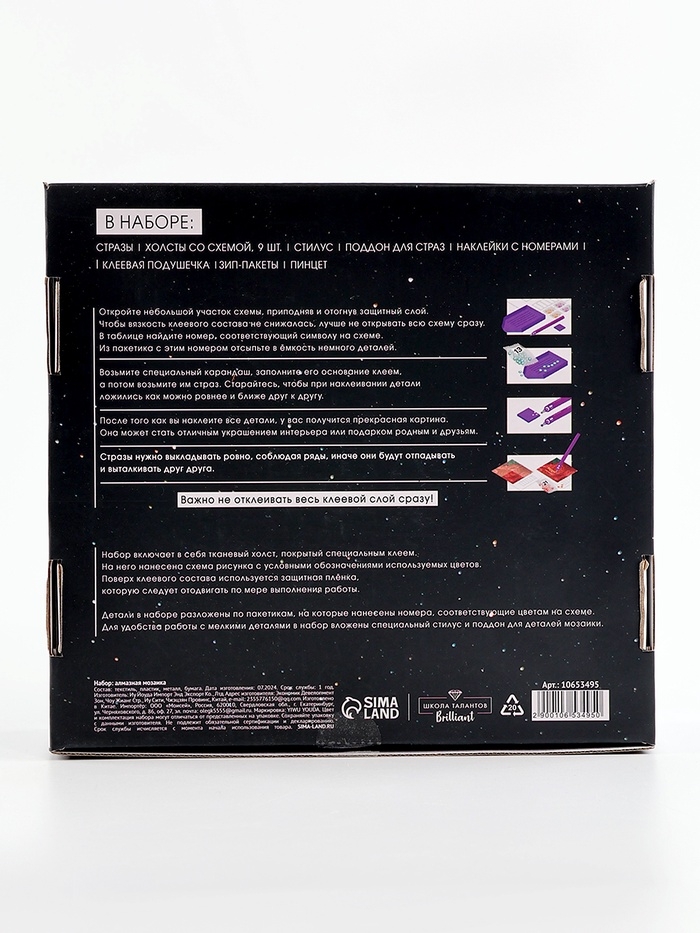 Вам предстоит разложить кристаллики карандашом по пронумерованной схеме. Холст с клеевым покрытием будет надёжно удерживать стразы.