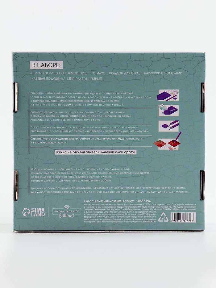 Вам предстоит разложить кристаллики карандашом по пронумерованной схеме. Холст с клеевым покрытием будет надёжно удерживать стразы.