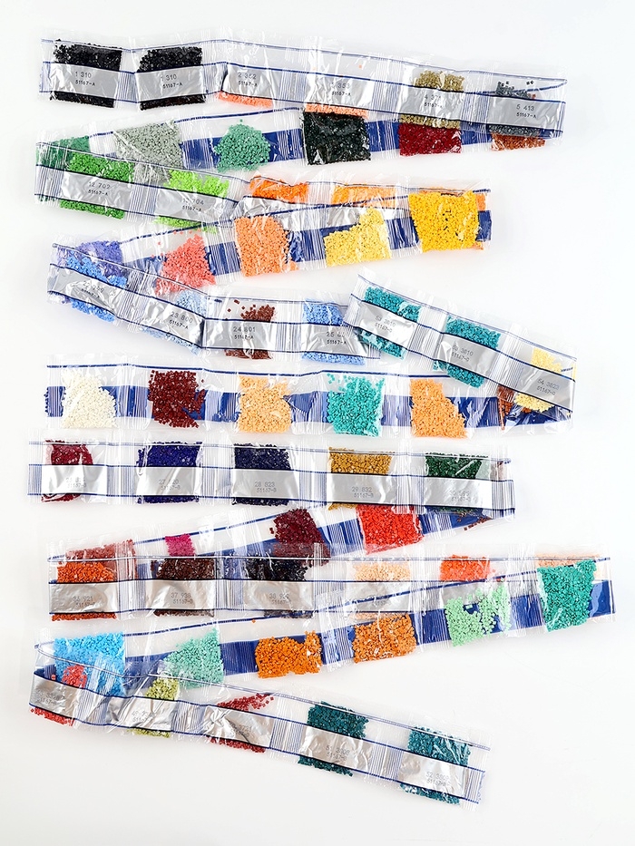 - Из пакетика с номером, который соответствует схеме, отсыпьте в ёмкость немного страз.