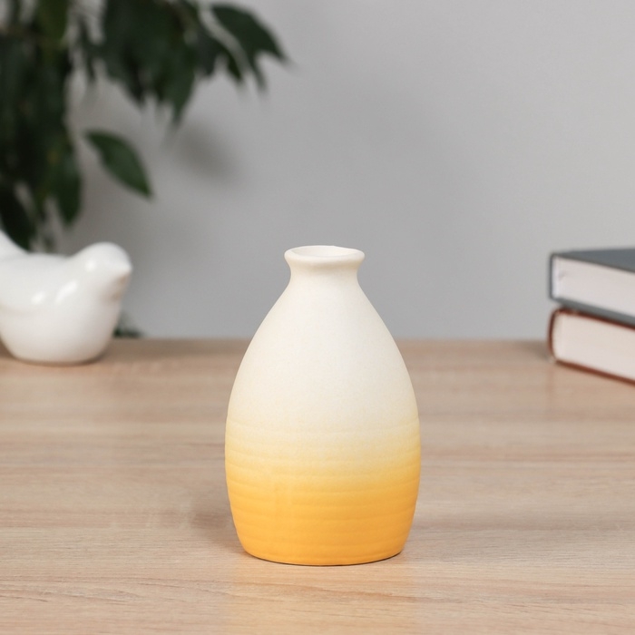 Ваза керамика настольная "Хайди" полосы, 10,5х6,5 см, бело-жёлтый
