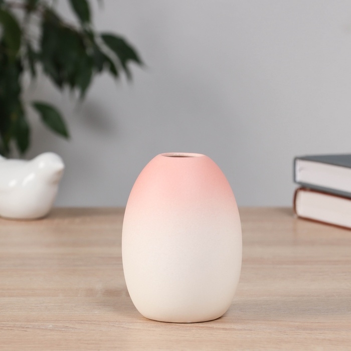 Ваза керамика настольная "Хайди" бочка, 10х6,5 см, бело-розовый