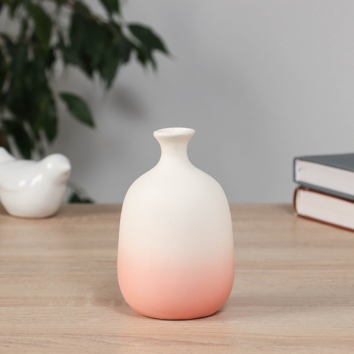 Ваза керамика настольная "Хайди" бутыль, 12х7 см, бело-розовый